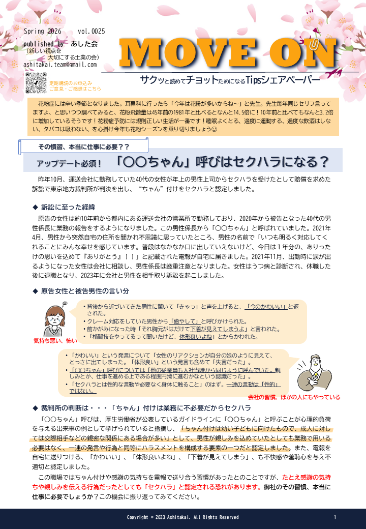- ニュースレター『MOVEON』2026/1号をアップしました